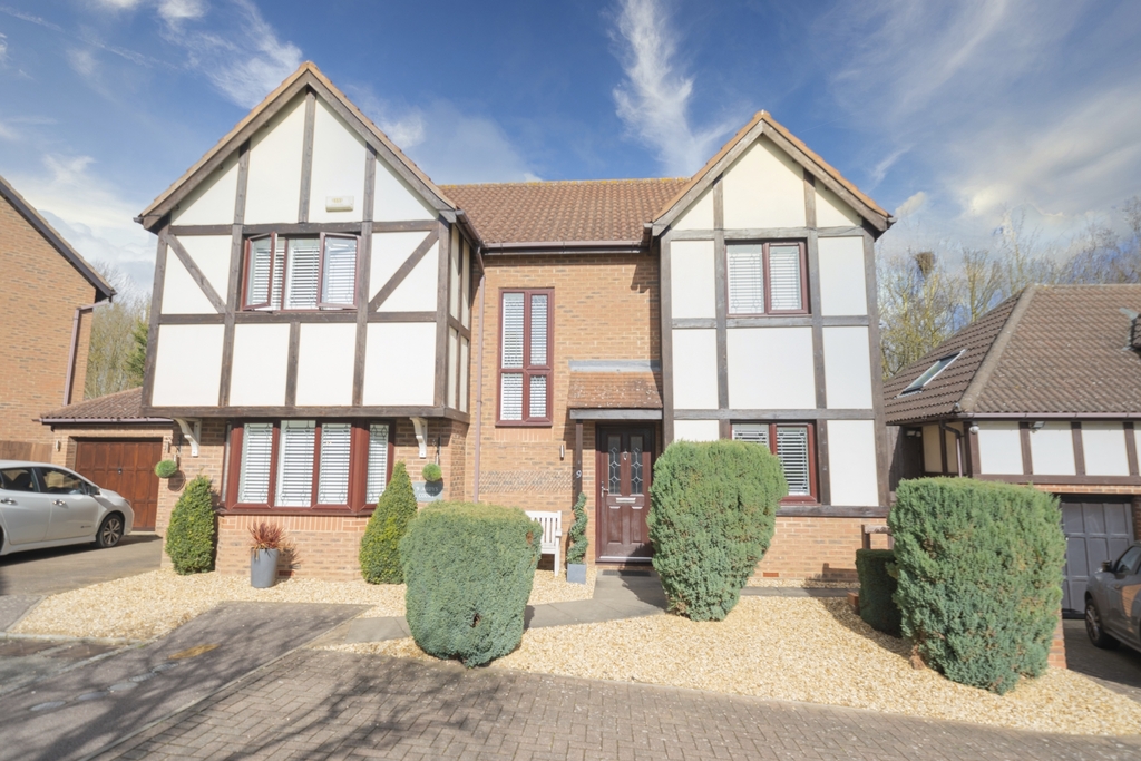 A modern 4 bedroom detached property with a landscape garden, driveway parking for two cars in a cul-de-sac.